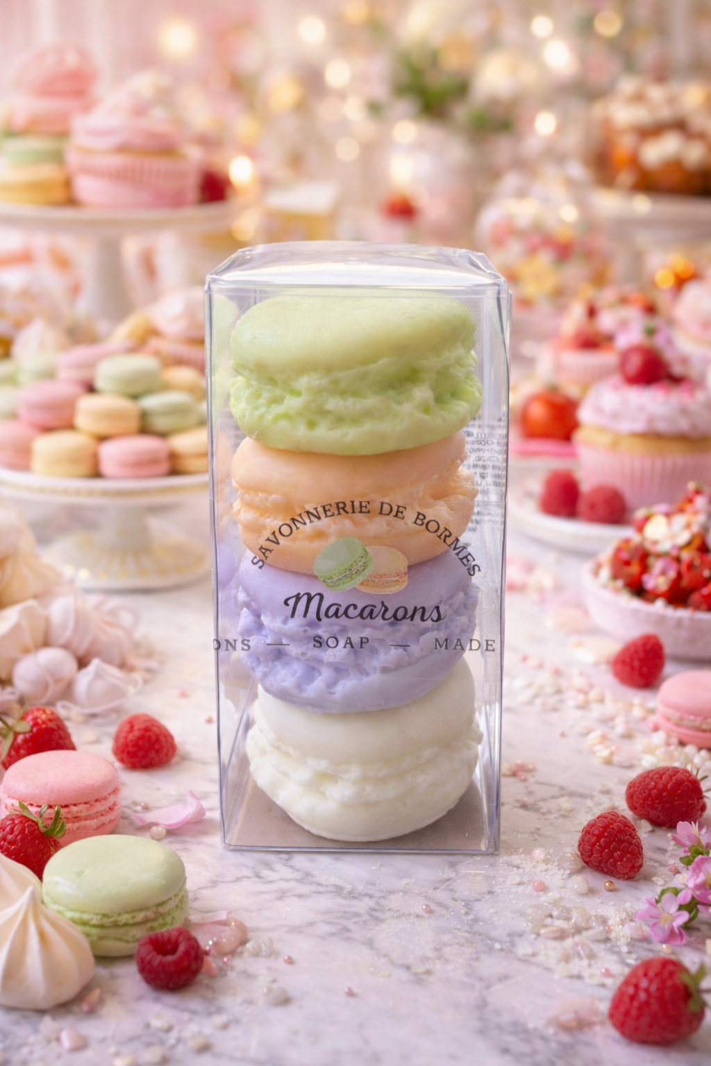 Macarons assortis verveine, orangeraie, musc, lavande en coffret