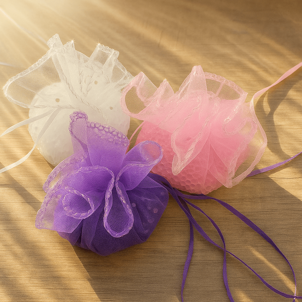 Un petit sac en organza avec perles de senteur pour armoire ou voiture.